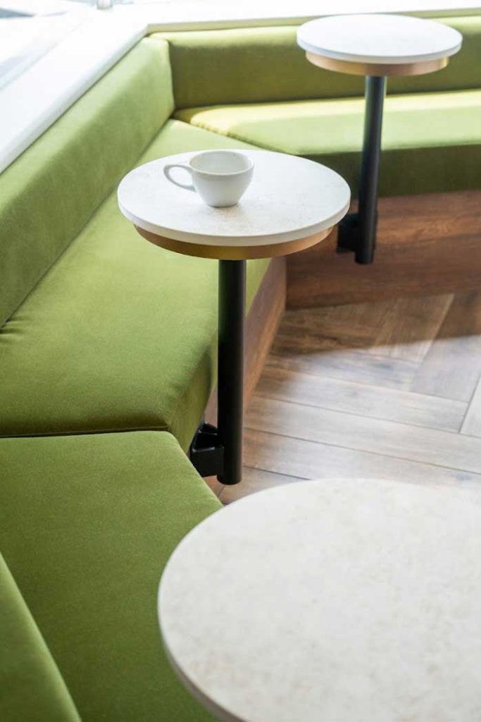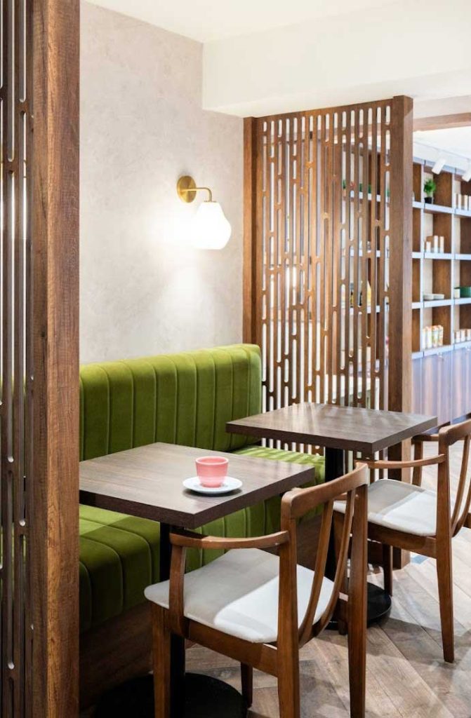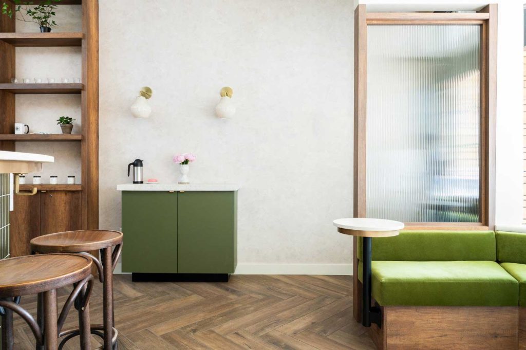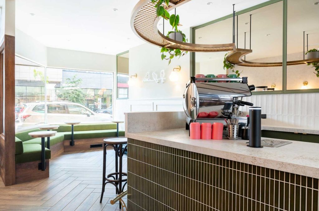 Central to the design philosophy is the incorporation of nature-inspired elements throughout the space. Living greenery, such as potted plants and hanging gardens, brings a touch of the outdoors inside, infusing the espresso bar with a sense of tranquility and connection to the natural world. The soft colour palette, reminiscent of earthy tones, promotes a calming atmosphere that encourages relaxation and contemplation.