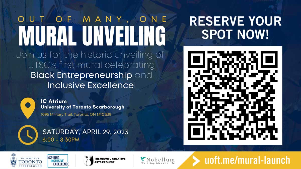 The Ubuntu Creative Arts Project & Nobellum in collaboration with The University of Toronto Scarborough, are excited and honoured to invite you to the unveiling of the UTSC‘s first art installation celebrating Black Entrepreneurship at the University of Toronto Scarborough – history in the making!