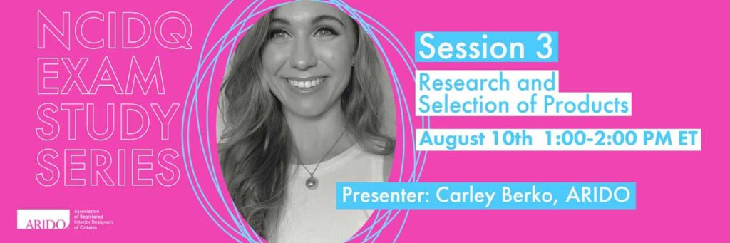 This series of virtual events is for ARIDO Interns to help you prepare for writing the NCIDQ exams.