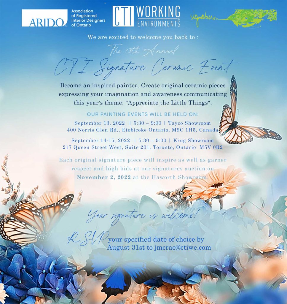 CTI is excited to welcome back to the 13th Annual CTI Signature Ceramic Event!