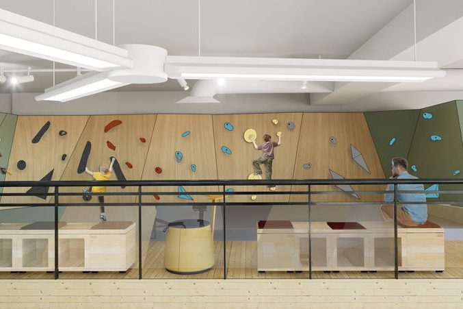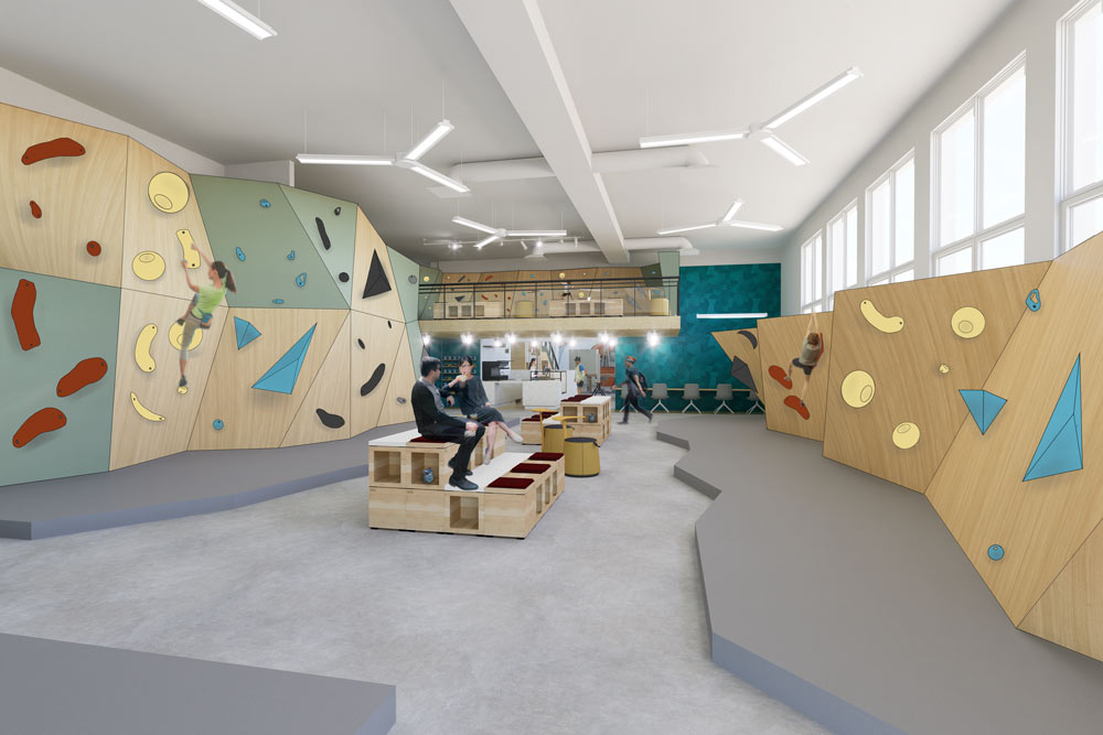 The Climb & Craft Café is an adaptive, re-imaginative project of the former Rideau High School in Ottawa, Ontario. This initiative aims to revitalize the community by offering after-school activities following the closure of the school. Research conducted indicates a need for safe, engaging spaces where youth can socialize, exercise, and express their creativity.