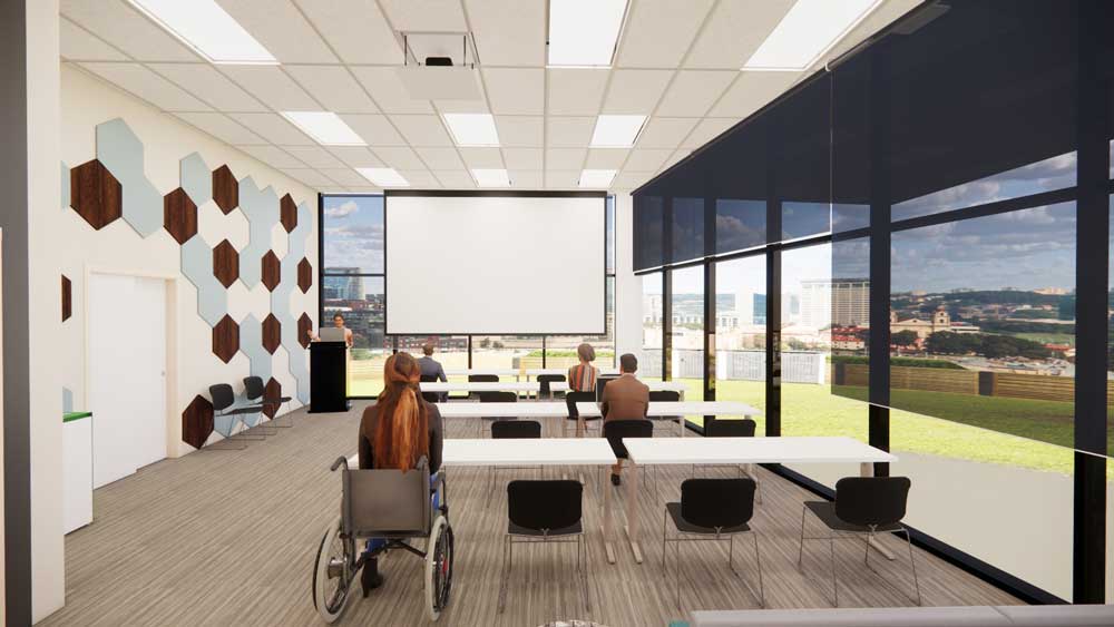 By establishing distinct workspaces, the creative office will provide a fluid work experience resulting in the ability of individual choice that will stimulate creative, collaborative relationships, strengthening the sense of community.
