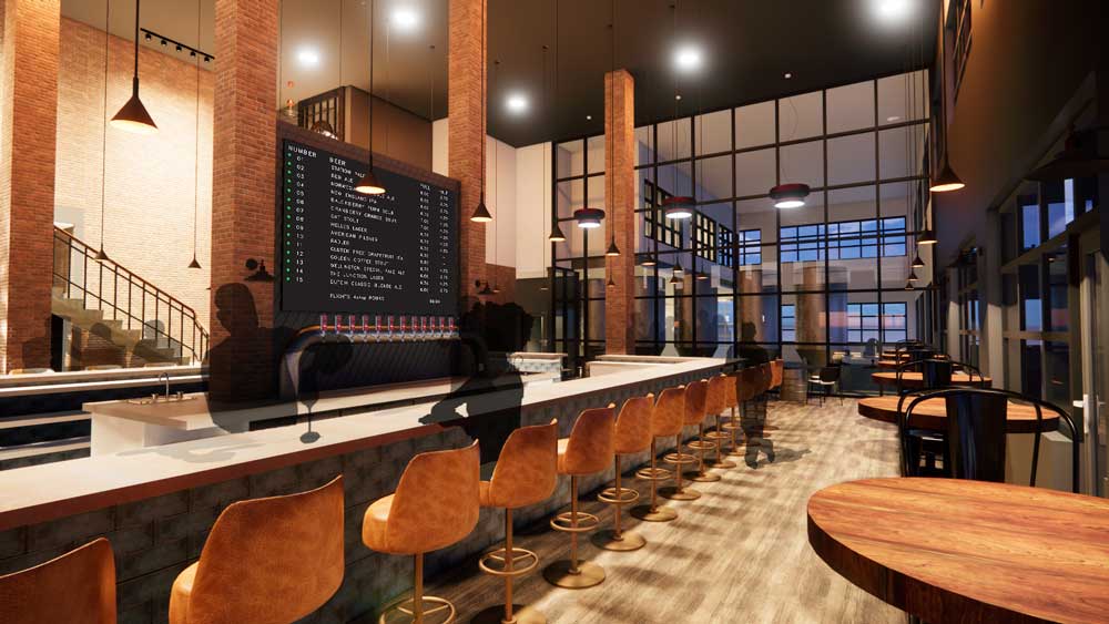 Bright, natural and artificial warm lighting fills the space, along with antique style signage that guides patrons throughout. The Junction Brewpub pays homage to the history of its location with an industrial aesthetic with character and architectural style reminiscent of the original CN Rail Building. The inclusive and accessible design will ensure the space is functional and accommodating for all members of the community.