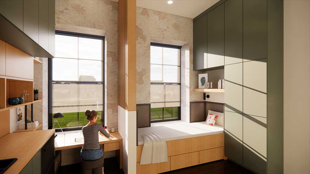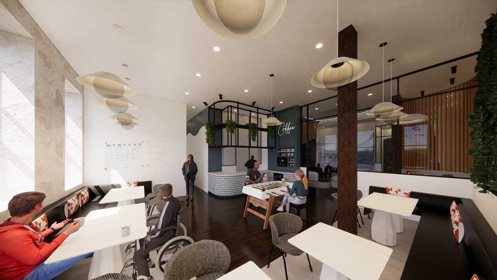 The Foundry is a trauma-informed, inclusive and welcoming environment that embraces the complexities of homeless youth and considers the full range of human diversity. The design utilizes elements of territorial identity to allow for the definition and confirmation of identity within a shared space. The Foundry addresses many of the underlying causes of youth homelessness through a system of age-appropriate supports, reducing the impacts of homelessness on the community and greater Waterloo Region.
