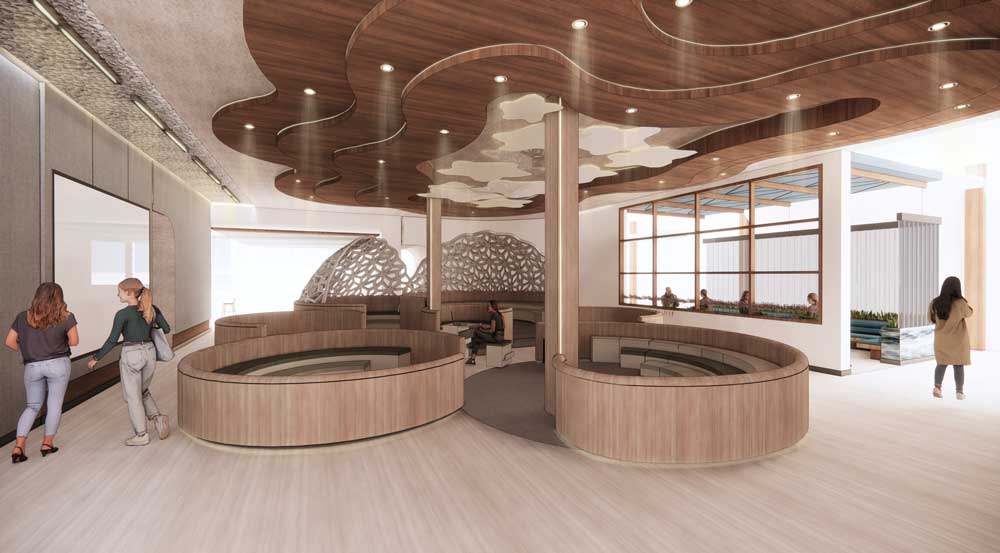 collaboration will be designed at a grander scale in contrast with traditional spaces for clinical attention,