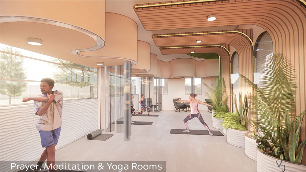 “The facility will be designed to promote wellness, using circular shapes to create continuous movement., generating an organic rhythm of endless interactions.”