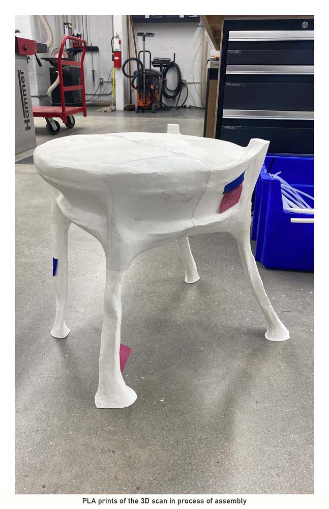 Through scanning and printing, the original design language of the chair became severely altered. The objects’ new identity acts as a means of addressing the gaps in communication that occur between digital and physical spaces.