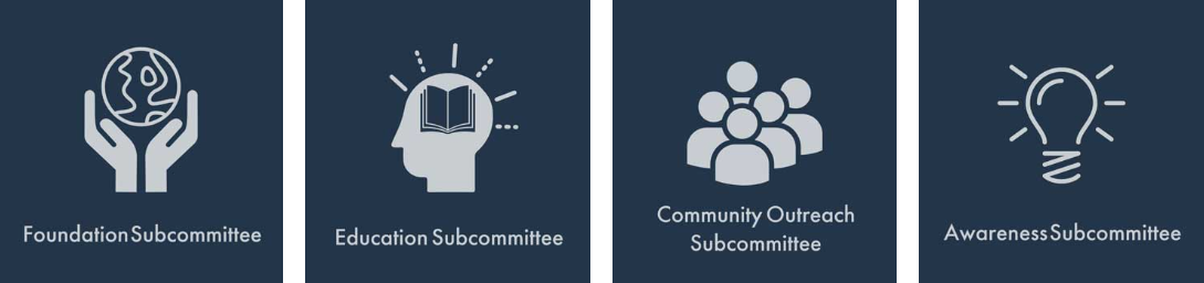 Currently, there are 4 subcommittees who are assisting with the design, development, management, and execution of the Plan of Action: the Foundation Subcommittee, the Education Subcommittee, the Awareness Subcommittee, and the Community Outreach Subcommittee.