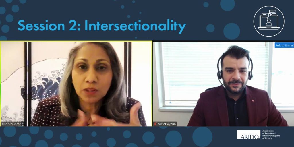 The second session unpacked the origins and meaning of the term Intersectionality to further understand its relevance in design and what new skills must be applied and developed. Lisa MacVicar presented these concepts, and the session was moderated by Victor Ayoub from Hafele Canada, another 90th Anniversary partner.