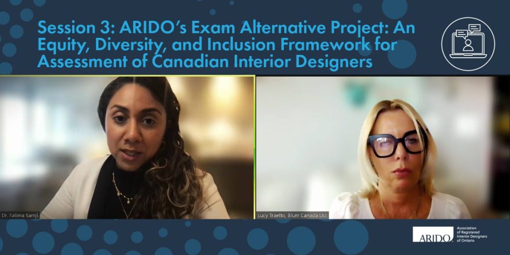 Finally, we ended the day with a session on ARIDO’s Exam Alternative Project where Dr. Fatima Samji shared a conceptual framework for EDI in assessment and presented her findings of this study in high level format. The session was moderated by Lucy Traetto from our Speaker Sponsor Blum Canada.