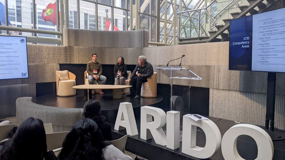 On day 1, we had a chance to network and catch up in the VIP Lounge for members, welcomed Registered Interior Designers to the CREDENTIALS MATTER digital photo booth, and enjoyed BID student presentations! We ended this exciting Trade day with a panel session on ICRS with Zinnia Bookwala, ARIDO, Alessandro Caselli, Intern ARIDO and Jose Tanabe, ARIDO’S Regulatory Coordinator.