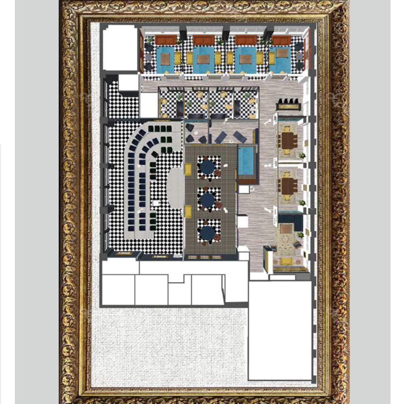 This design took inspiration from the ornateness and individuality that past design embraced; every detail is thoughtful and symbolic, and spaces are vibrant and artisanal.