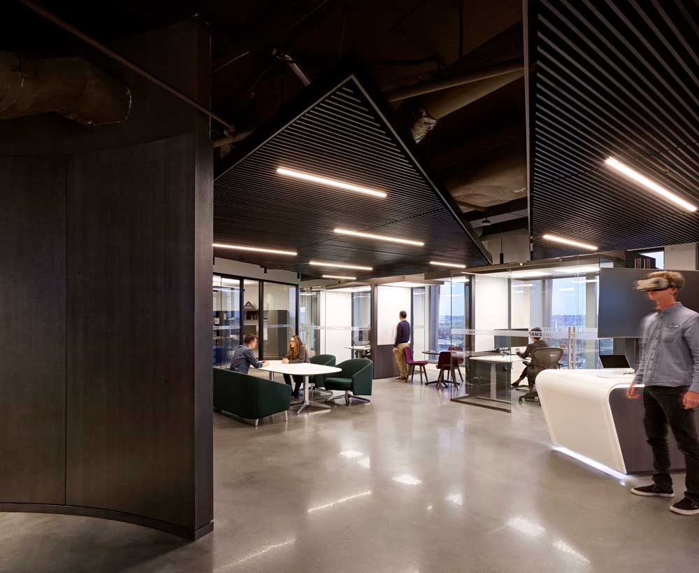 The future is calling! This company is answering with an interactive, tech-driven office interior