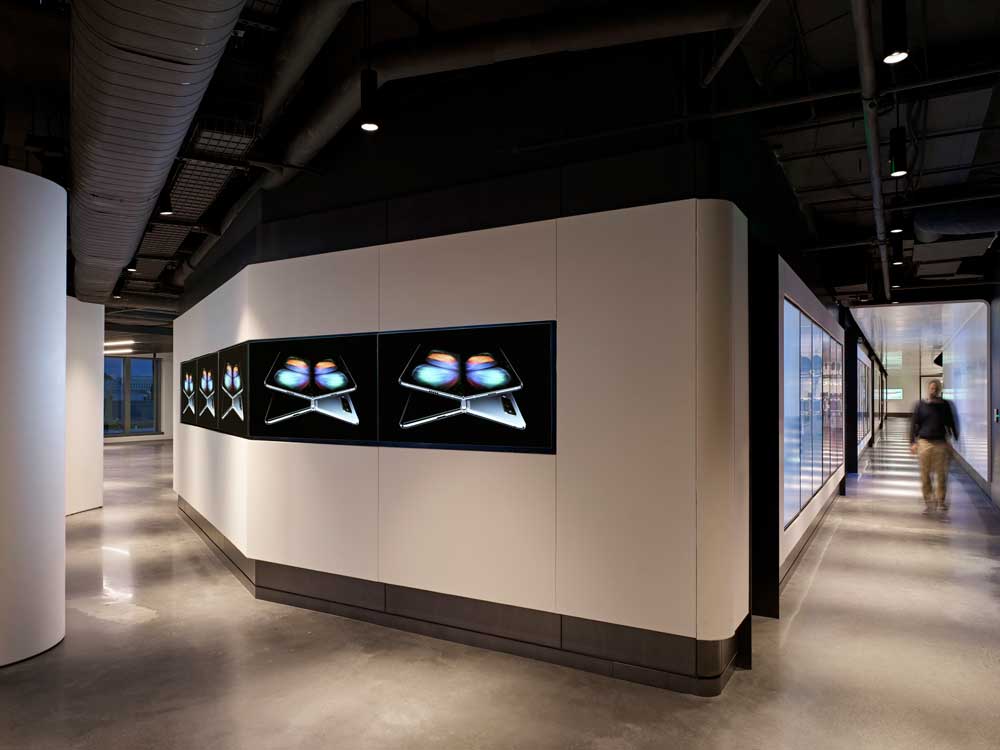 The display and support of future technologies was a critical component of what was to become the backbone of this interior. Capturing Samsung’s history and promoting their future were imperative elements for this office project.